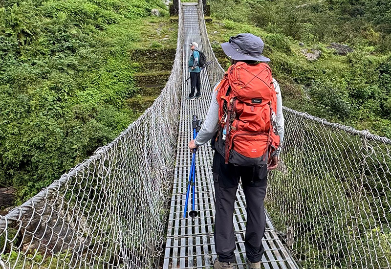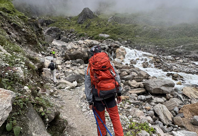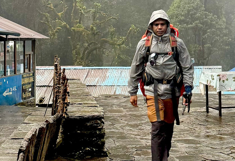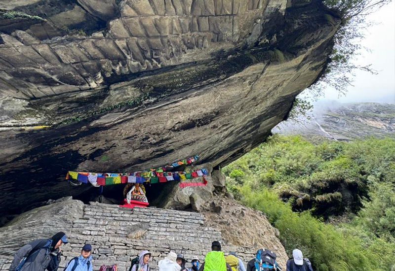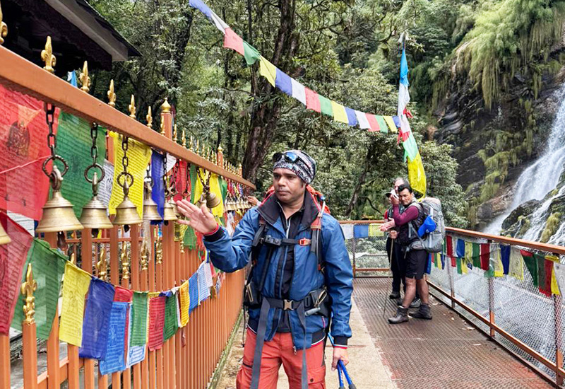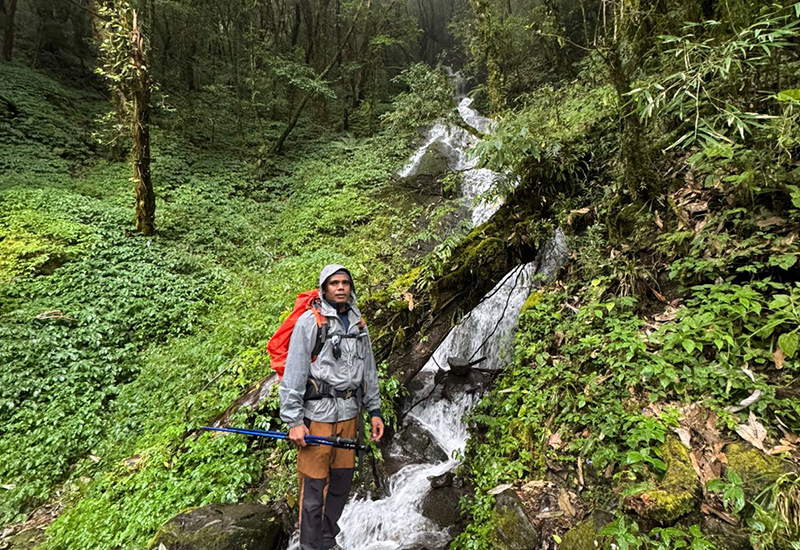 Today’s path led us away from villages into the heart of nature. Bamboo groves, cascading waterfalls, and the symphony of river and wind became constant companions. The climb was steady, meditative. Dovan appeared like a quiet hermitage surrounded by dense forest — no phone signals, no noise, just the rhythm of one’s own breath. The Himalayas began to feel closer, almost sentient.