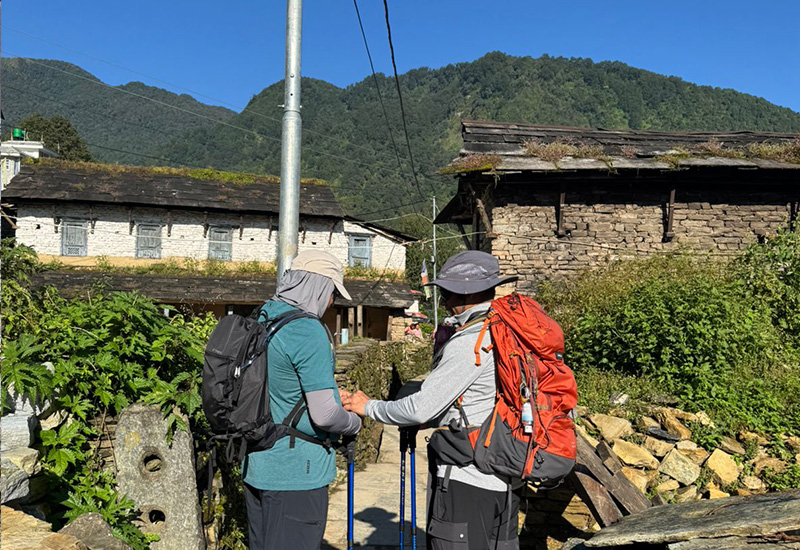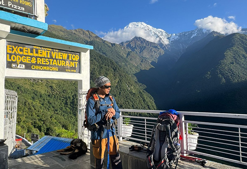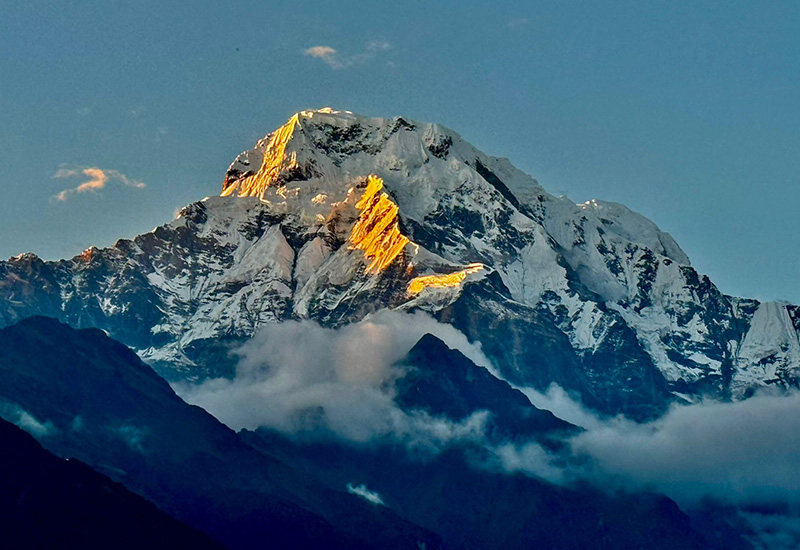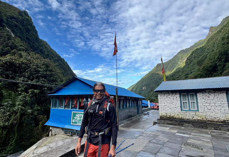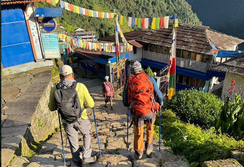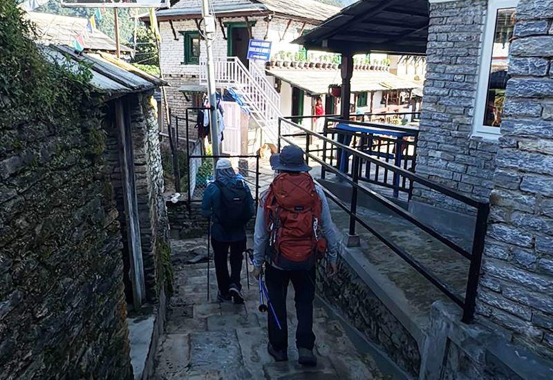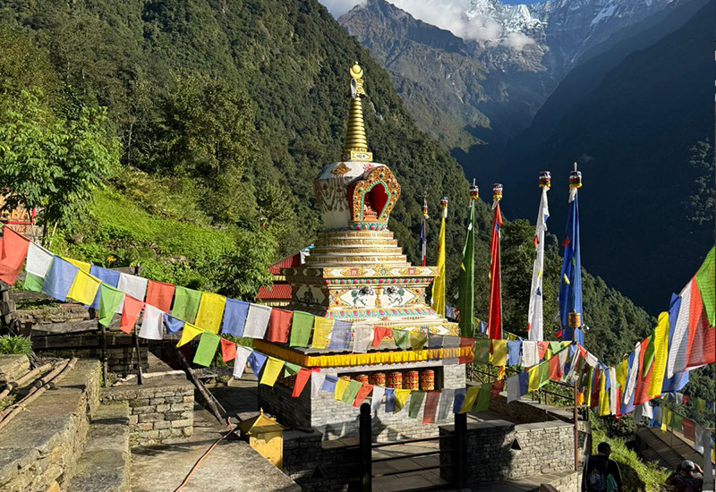 We descended into a deep valley only to climb again — the rhythm of the Himalayas. Steep stone stairs tested endurance, while every turn offered a new perspective of Annapurna South. Chhomrong greeted us in clouds and prayer flags. The village felt alive — chickens clucking, porters laughing, trekkers resting. Dinner of dal bhat never tasted so good. A chill wind carried whispers of higher trails.