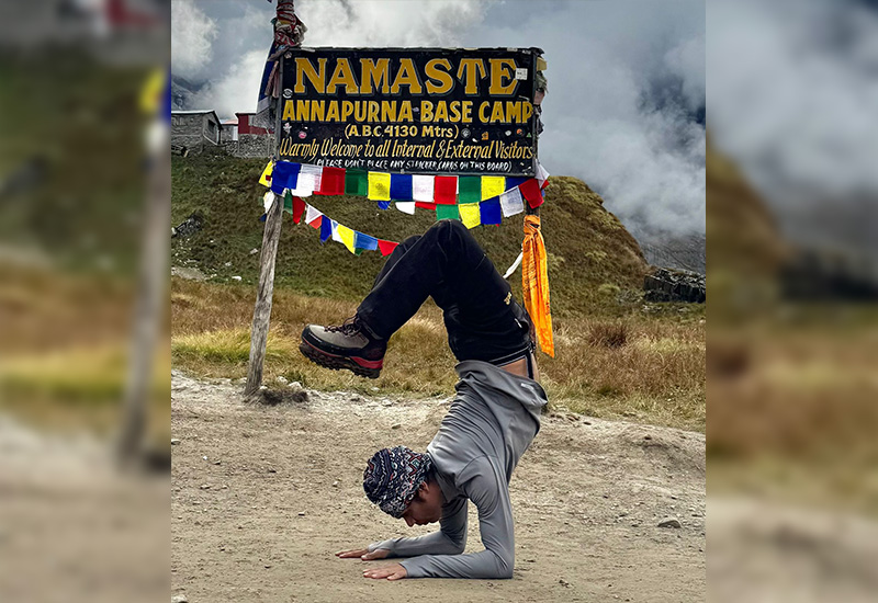 Before dawn, we set out. The trail climbed steadily past MBC (Machhapuchhre Base Camp), the sacred mountain watching over us. Snowfields gleamed in early light. As we reached ABC, the amphitheater of peaks — Annapurna I, South, Hiunchuli, Fishtail — surrounded us in silence so vast it swallowed words. 4,130 meters. Tea steam rose in the thin air, hearts full of awe and gratitude. Sunrise painted the peaks gold — a moment beyond thought, beyond self